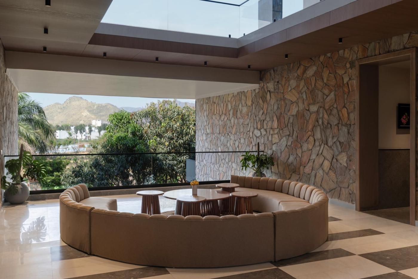 Boasting a garden, private pool and mountain views, SaffronStays Solitaire Suites is situated in Bedla. This property offers access to a balcony, a pool table, free private parking and free WiFi. The homestay features a hot tub and a lift.