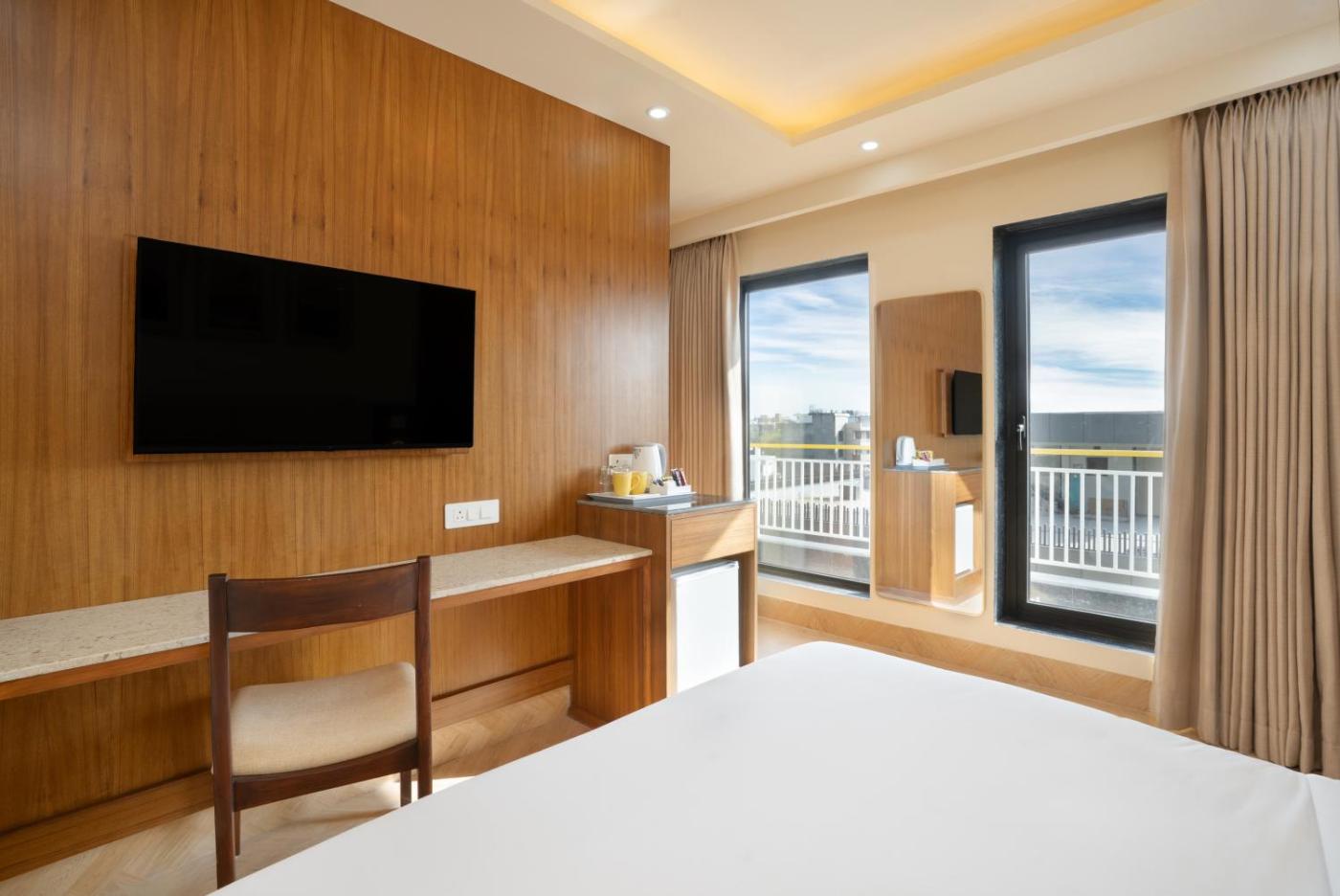 At the hotel, the rooms have a desk.rooms in Bloom Boutique l Sector 45 Gurugram are fitted with a flat-screen TV and free toiletries.